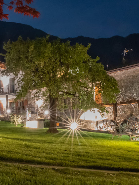 Gli spazi abitativi della Famiglia dei mugnai e la storica Casa Amalia, dopo accurato restauro, ospitano oggi sei accoglienti alloggi: Il Granaio, Casa Amalia, La Volta, Il Fienile, Alle Macine e La Roggia. La ristrutturazione è avvenuta in modo sostenibile, riutilizzando e ricollocando, ove possibile, i materiali originali, e adottando tecnologie intelligenti per il risparmio energetico. Ad accogliere gli ospiti nel grande giardino di 4.000 mq ci sono due gatti bianchi e neri: Tillo e Tilla. Condividono il prato con le api e gli altri insetti impollinatori che ronzano tra cespugli di lavanda, margherite e un cedro del Libano secolare, mentre una piccola altalena pende dal ramo di un pero. Su tutti veglia il Monte Legnone che, con i suoi 2.609 m, è la cima più alta del settore occidentale delle Alpi Orobie e ospita a 750 m il Valorga, il più basso nevaio d'Europa.